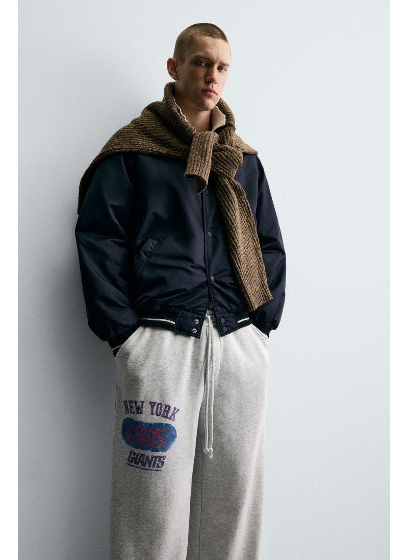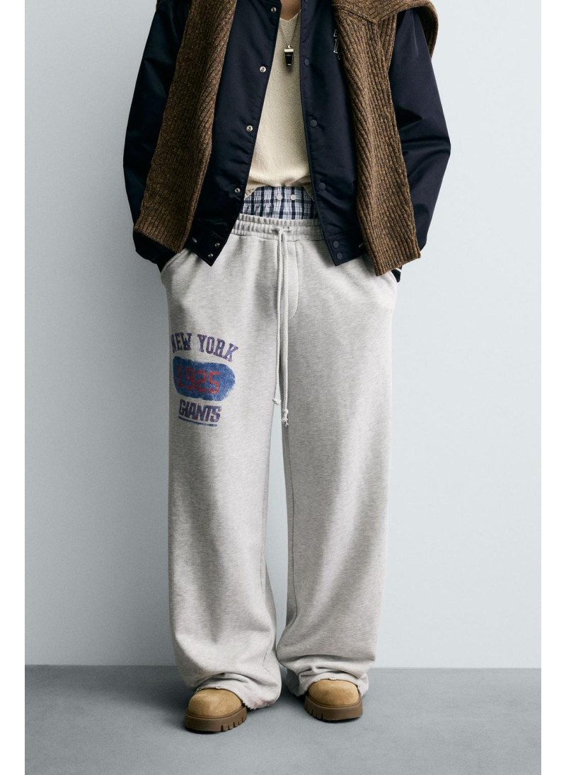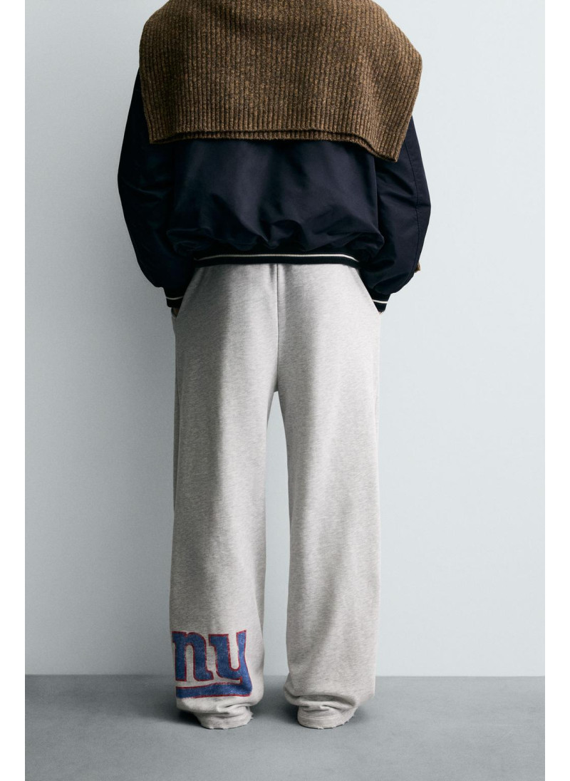 Широкие джоггеры из хлопковой ткани с мягким ворсом. Широкие штаны. Регулируемый пояс на резинке с завязкой. Передние карманы. Графические принты NFL New York Giants спереди и сзади. Низ обработан в сыром виде.