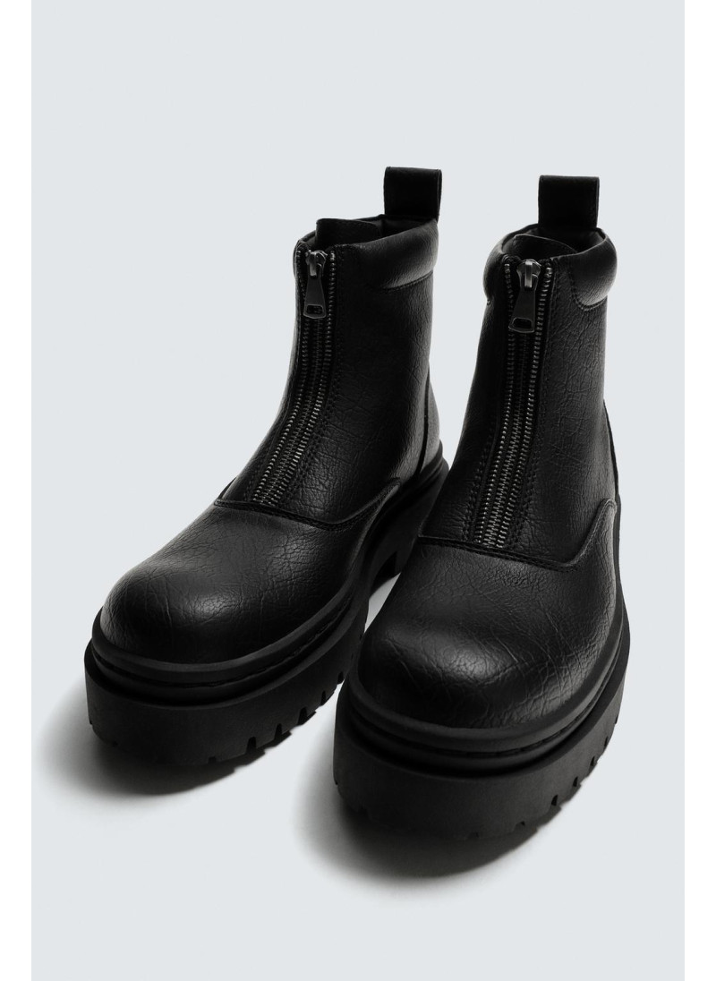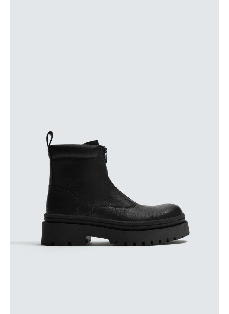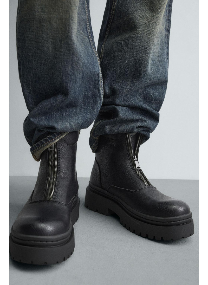 Ботинки с центральной молнией. Верх с текстурой. Круглый нос. Объемная рифленая подошва.