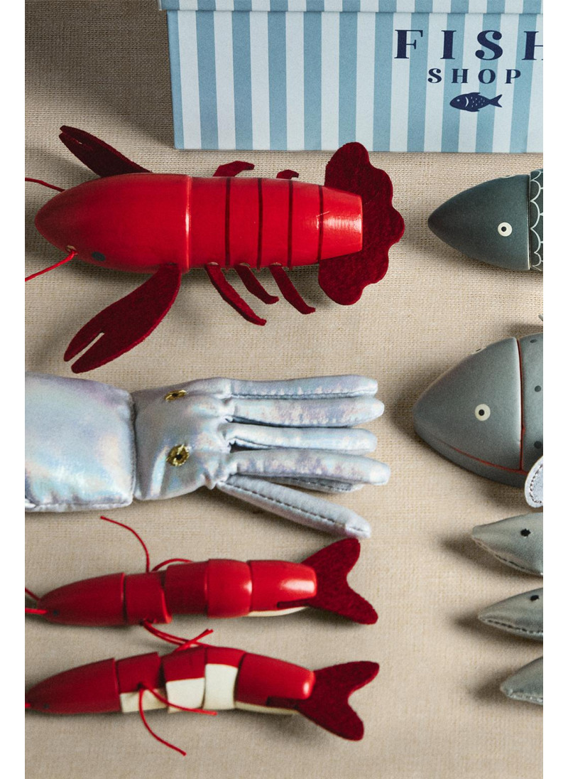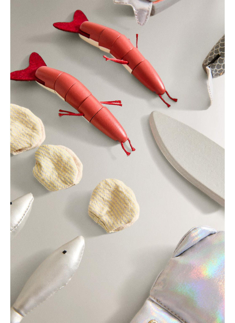 Детский набор для игры в рыбалку. Включает в себя 12-предметный набор с различными видами рыб, выполненных из дерева и мягких тканей.