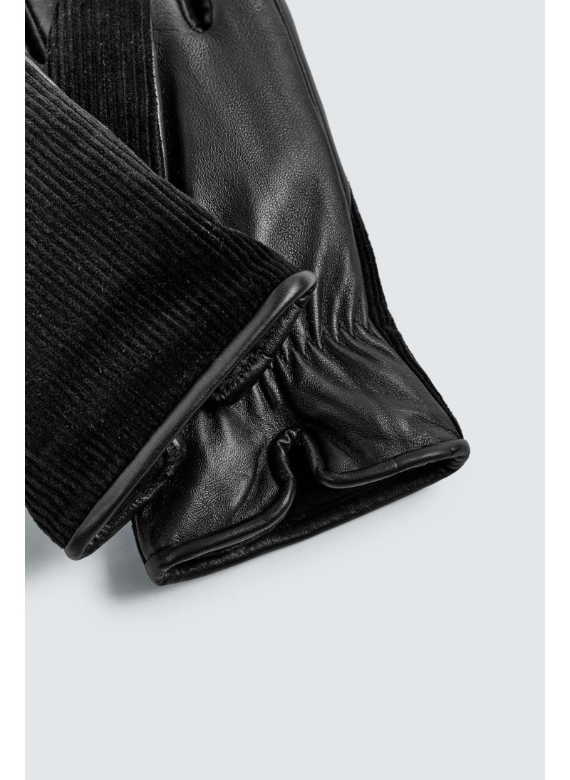 Козырьки из кожи с контрастным тоновым вельветовым материалом. Имеют вязаную подкладку и эластичные манжеты.