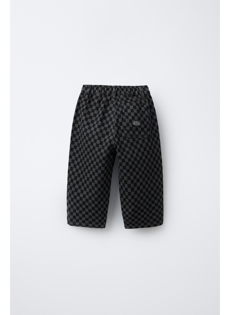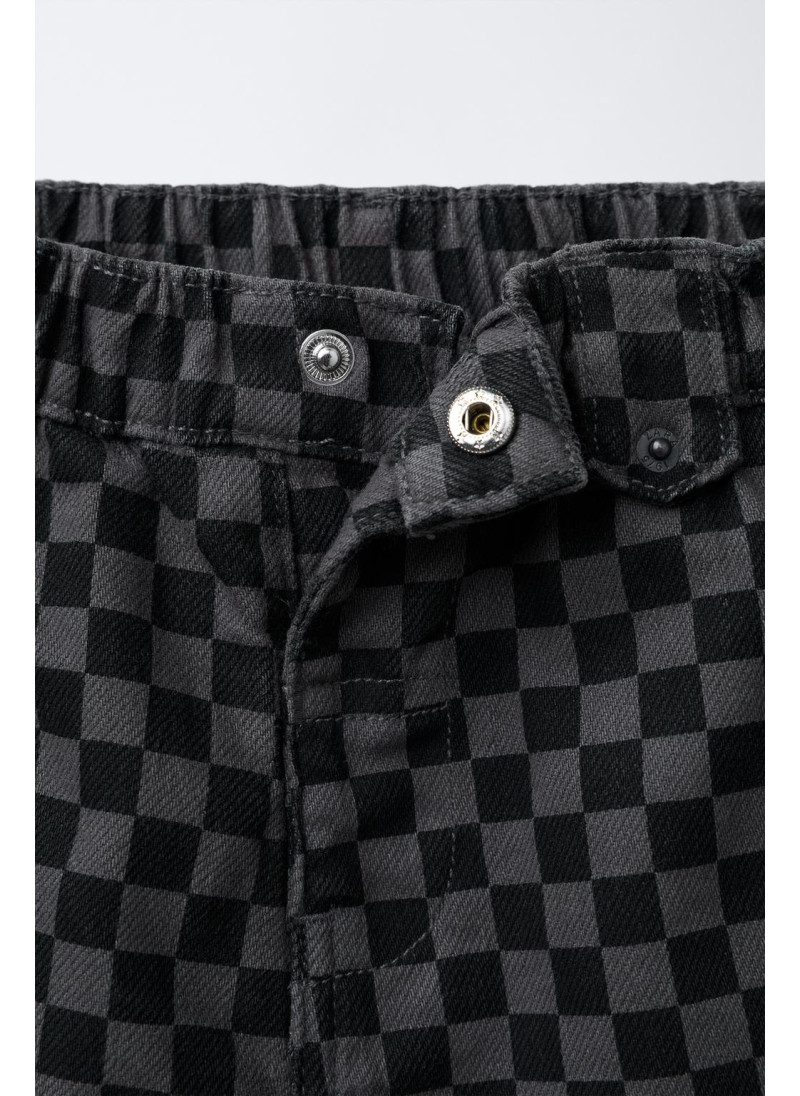 Брюки в стиле багги с эластичным поясом и застежкой на передние кнопки. Передние карманы и задние накладные карманы с аппликацией. Греющая, мягкая и мягкая внутренняя отделка. Клетчатый принт.
