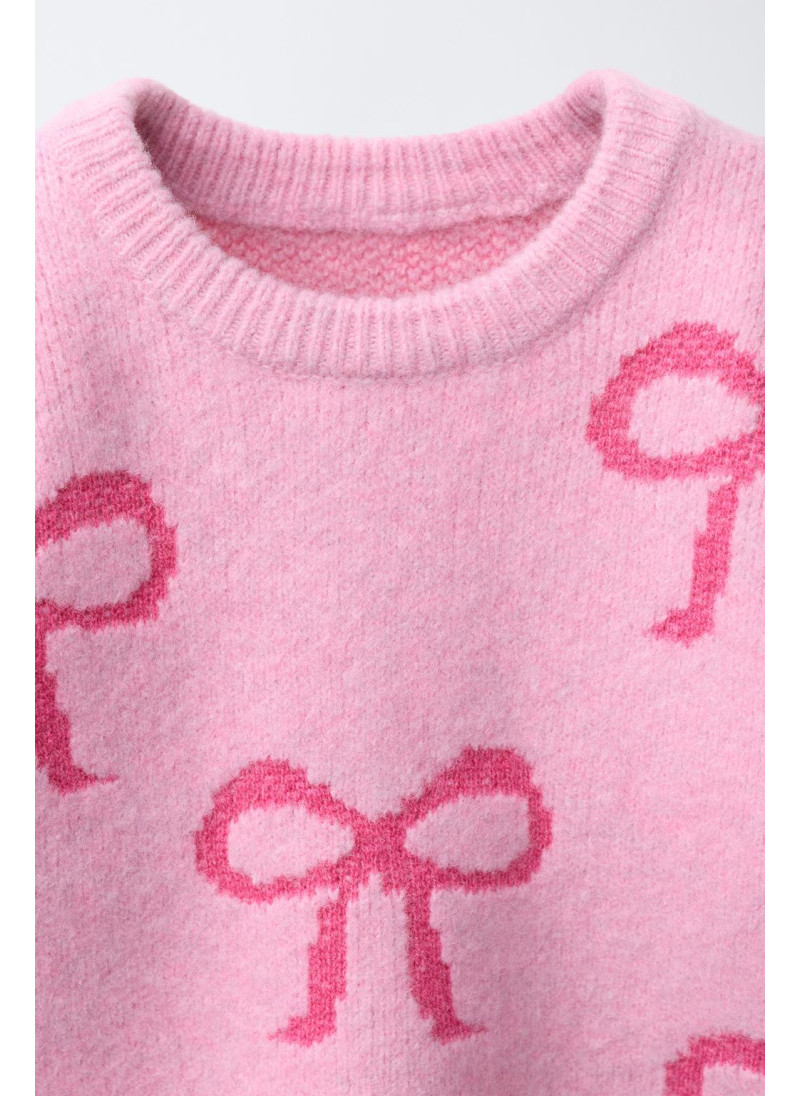 Вязаный джемпер с круглым вырезом и длинными рукавами. Принт «Банты».