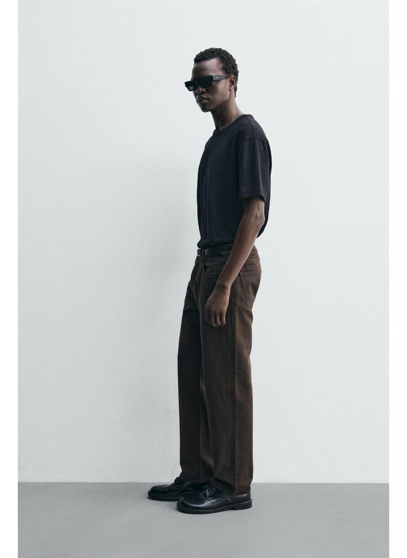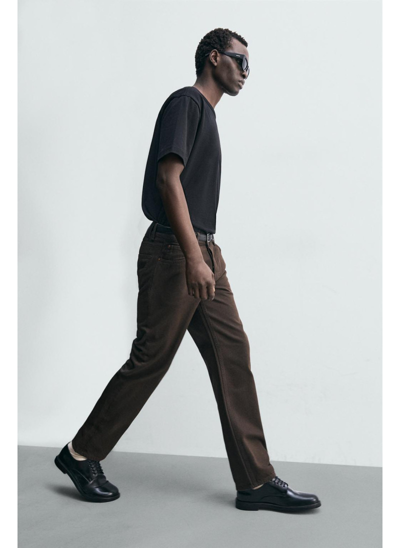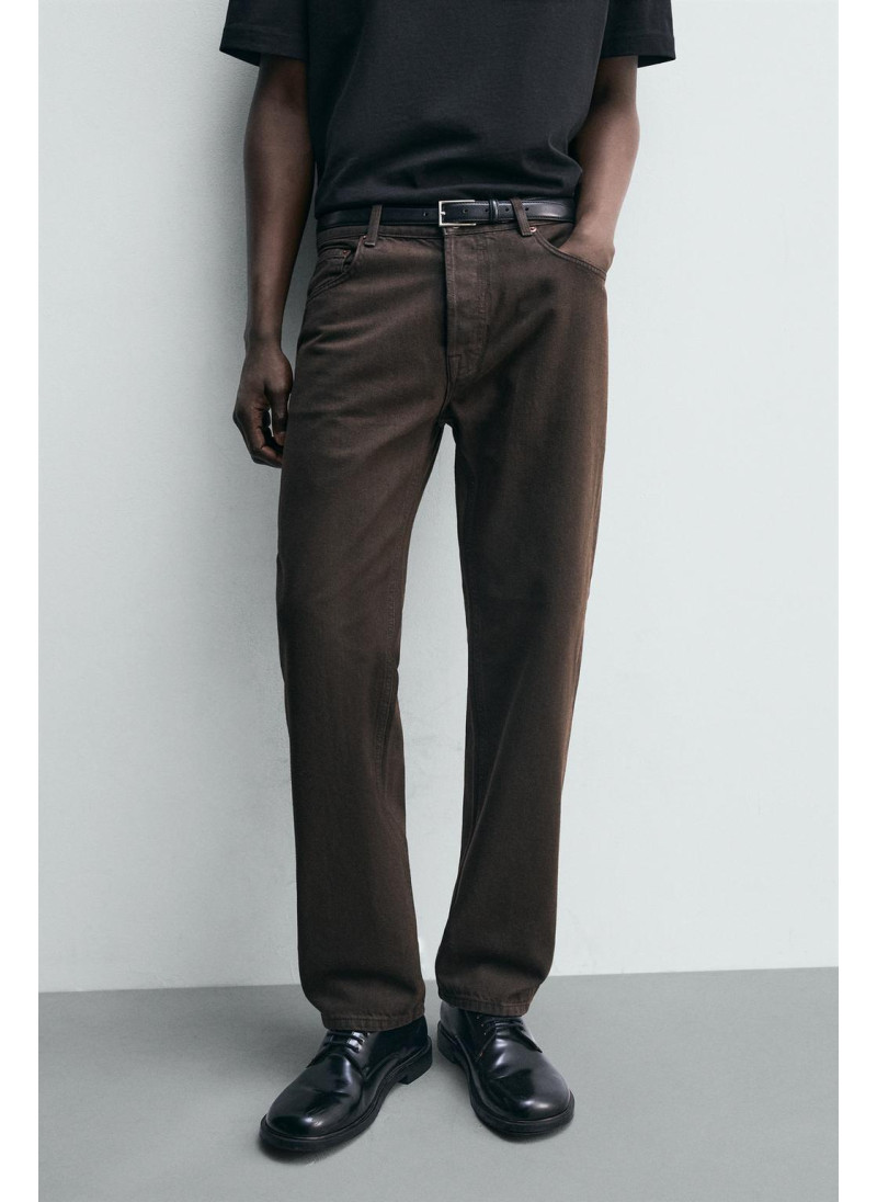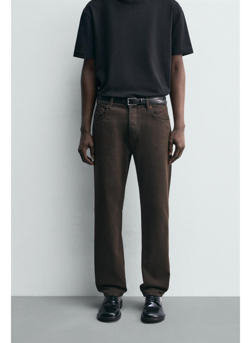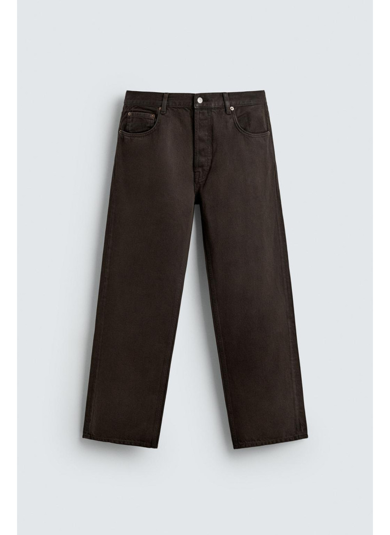 Джинсы стандартного кроя. Пять карманов. Эффект потертости. Застежка на пуговицы спереди.
