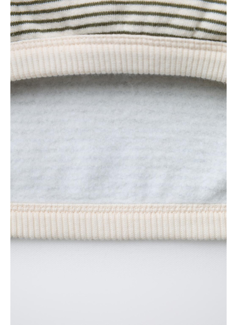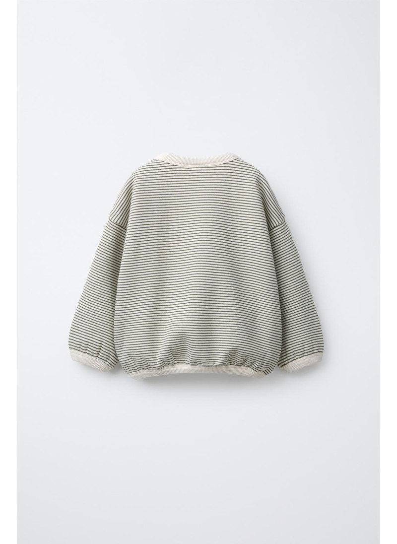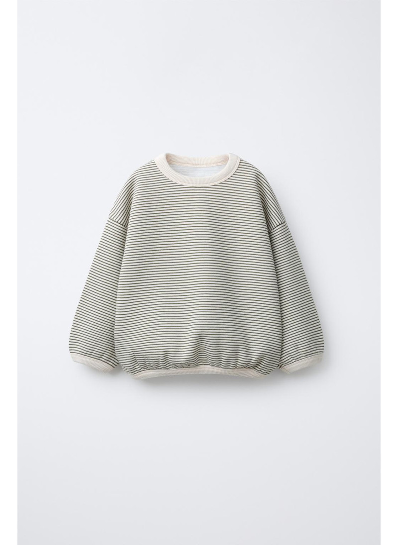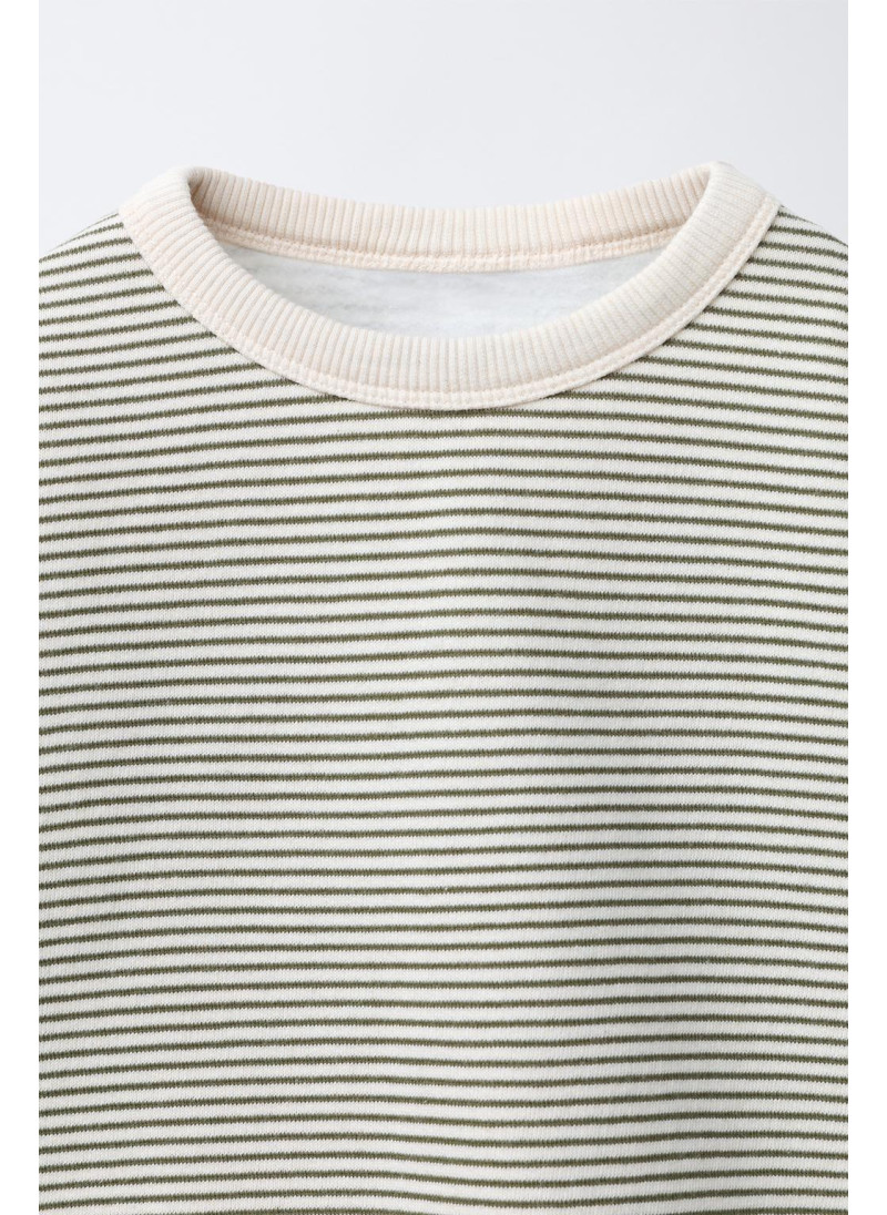 Свитшот с круглым вырезом и длинным рукавом. Ребристые манжеты. Принт в полоску. Теплое и мягкое ворсовое внутреннее покрытие. Ткань из 82% хлопка.