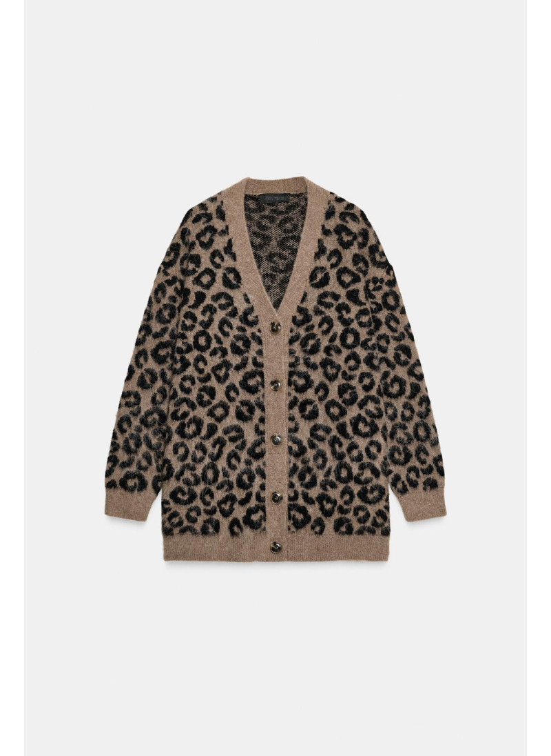 ЖАККАРДОВЫЙ КАРДИГАН ОВЕРСАЙЗ С АНИМАЛИСТИЧЕСКИМ ПРИНТОМ