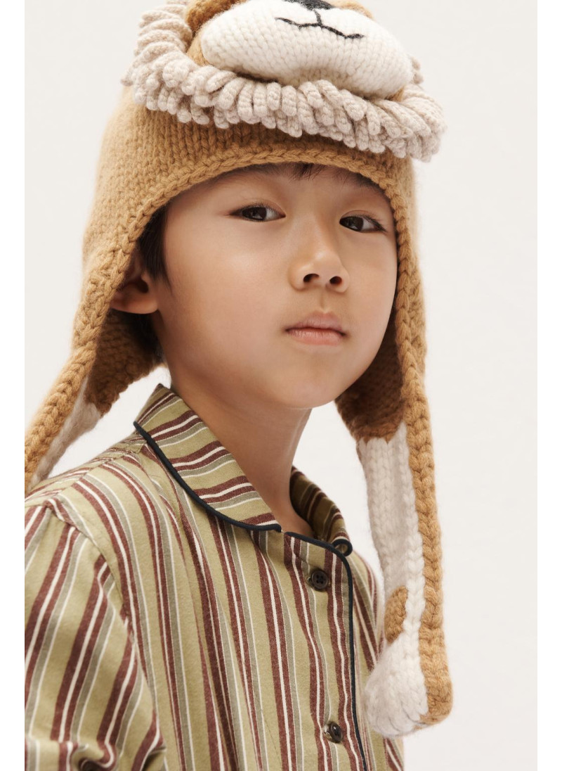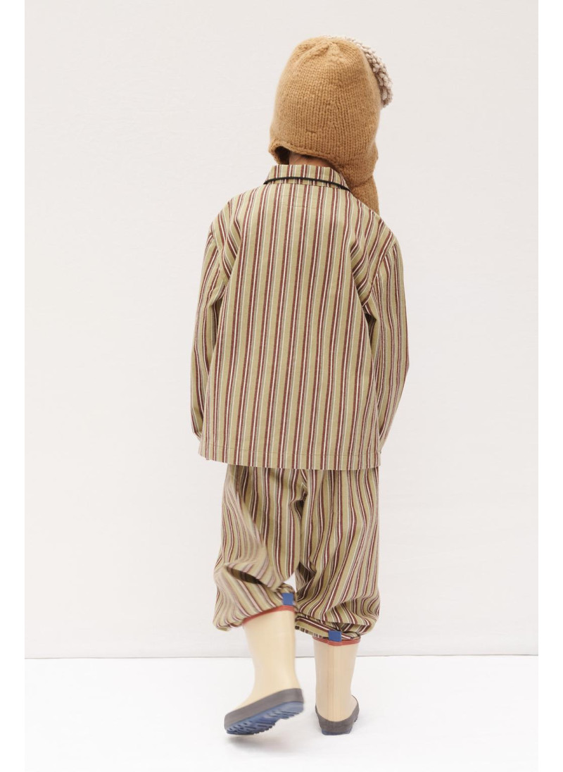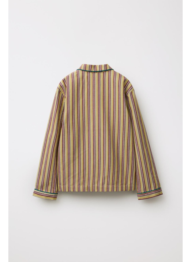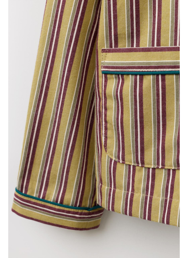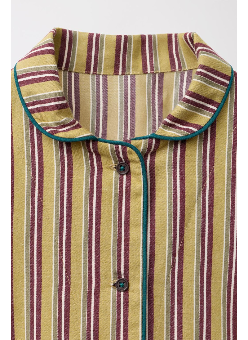 Рубашка с воротником "петер пэн" и длинными рукавами. Застежка на пуговицы спереди. Накладные карманы спереди. Принт в полоску. Ткань 100% хлопок.