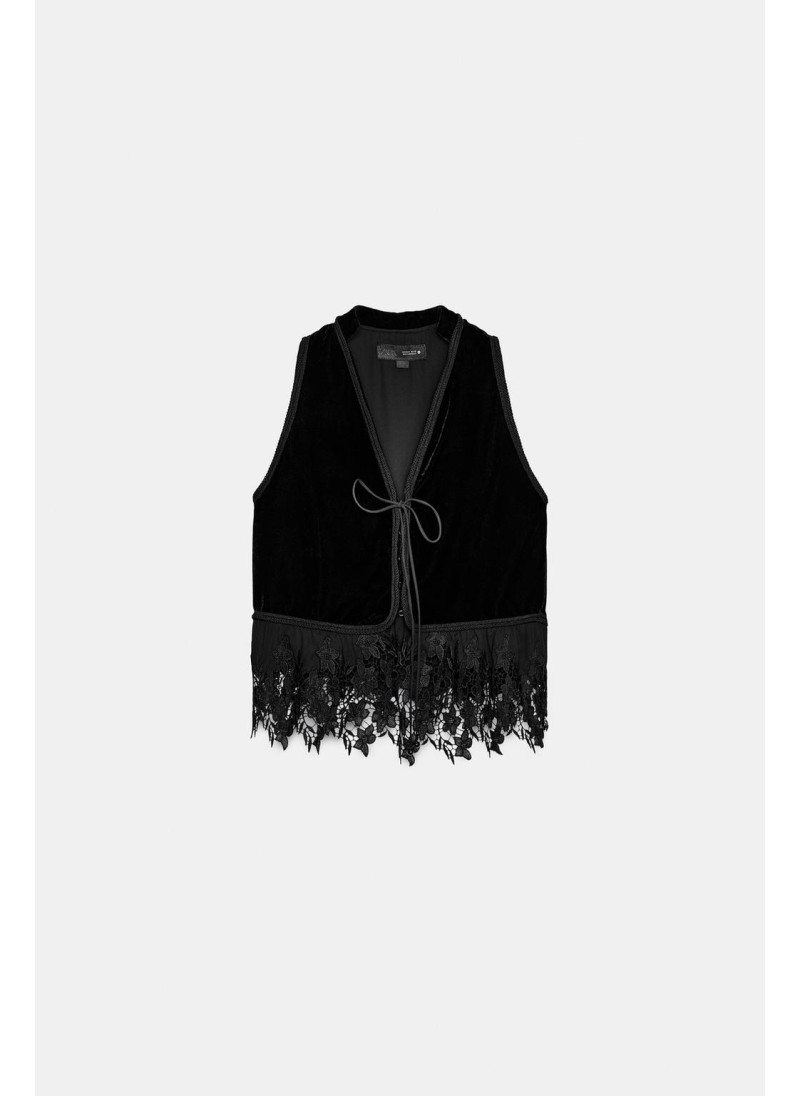 Жилет из комбинированного бархата Zw Collection Limited Edition. Цвет: черный. Артикул: Black | 9000/158/800