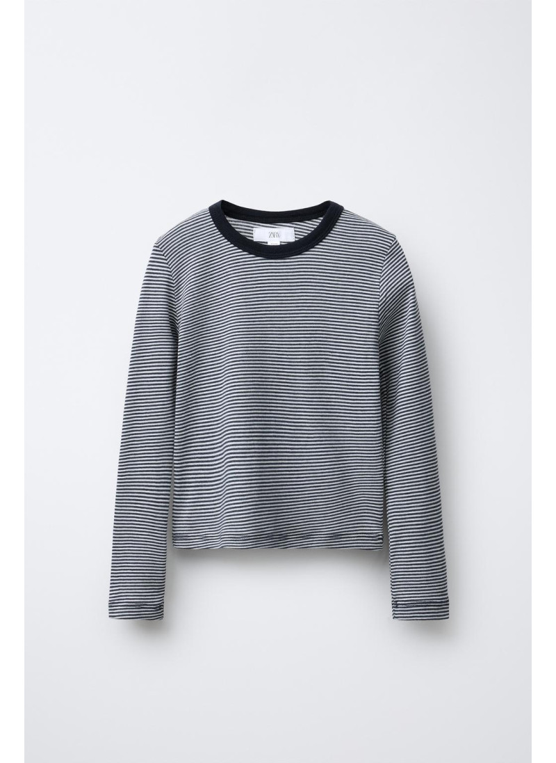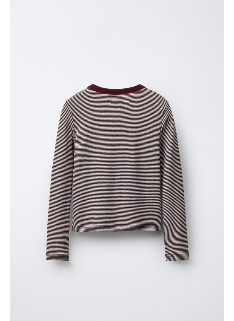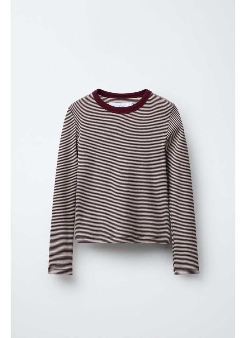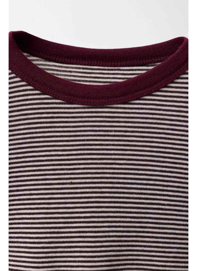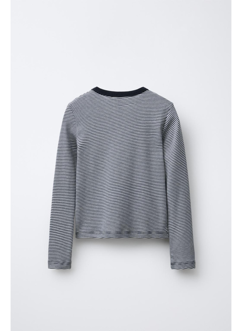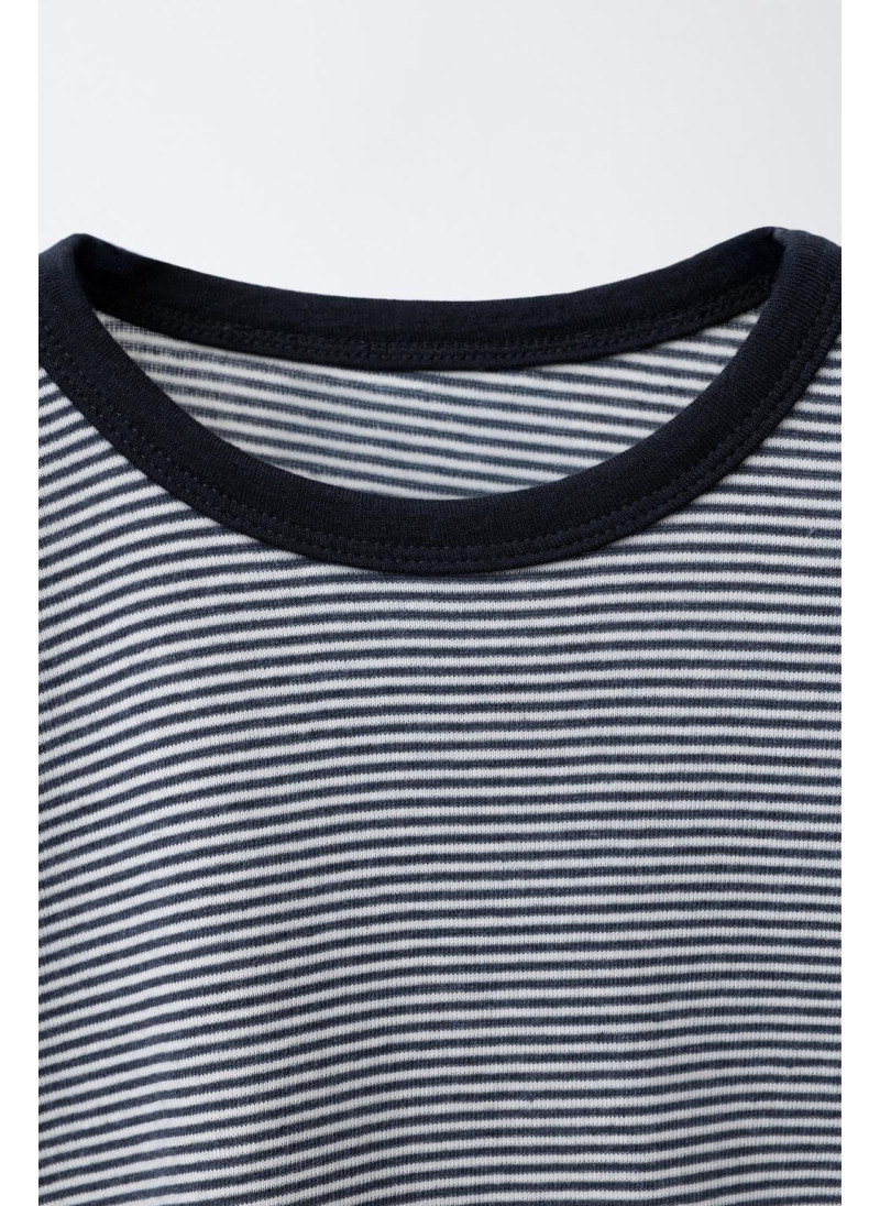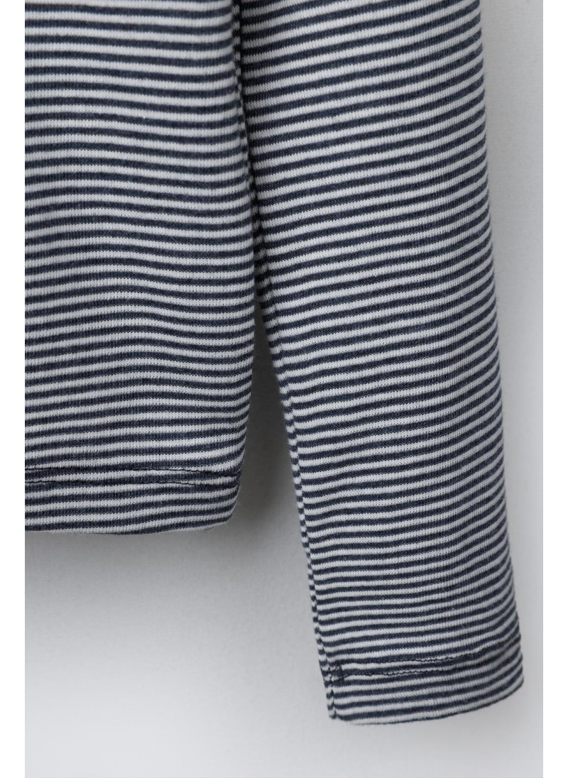 Футболка с круглым вырезом, контрастной отделкой и длинными рукавами. Полосатый принт. Ткань на 50% состоит из хлопка.