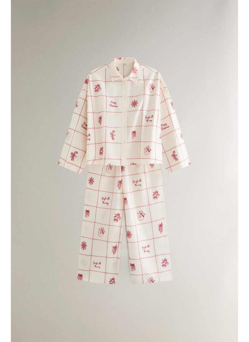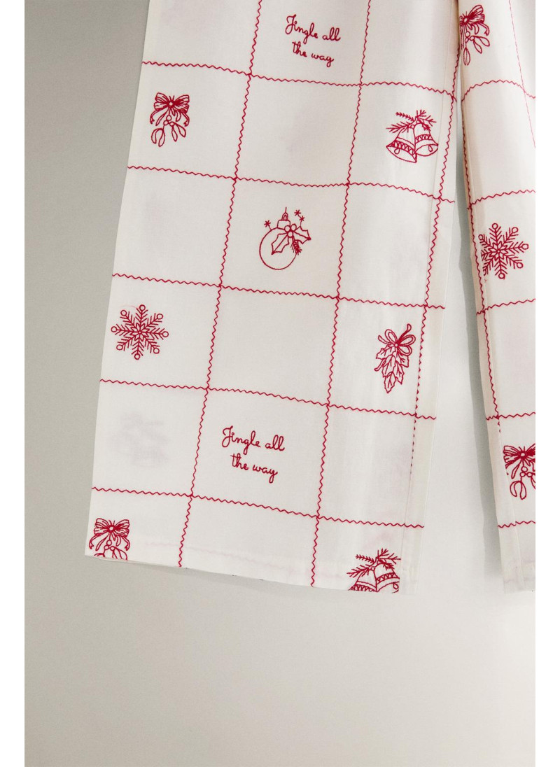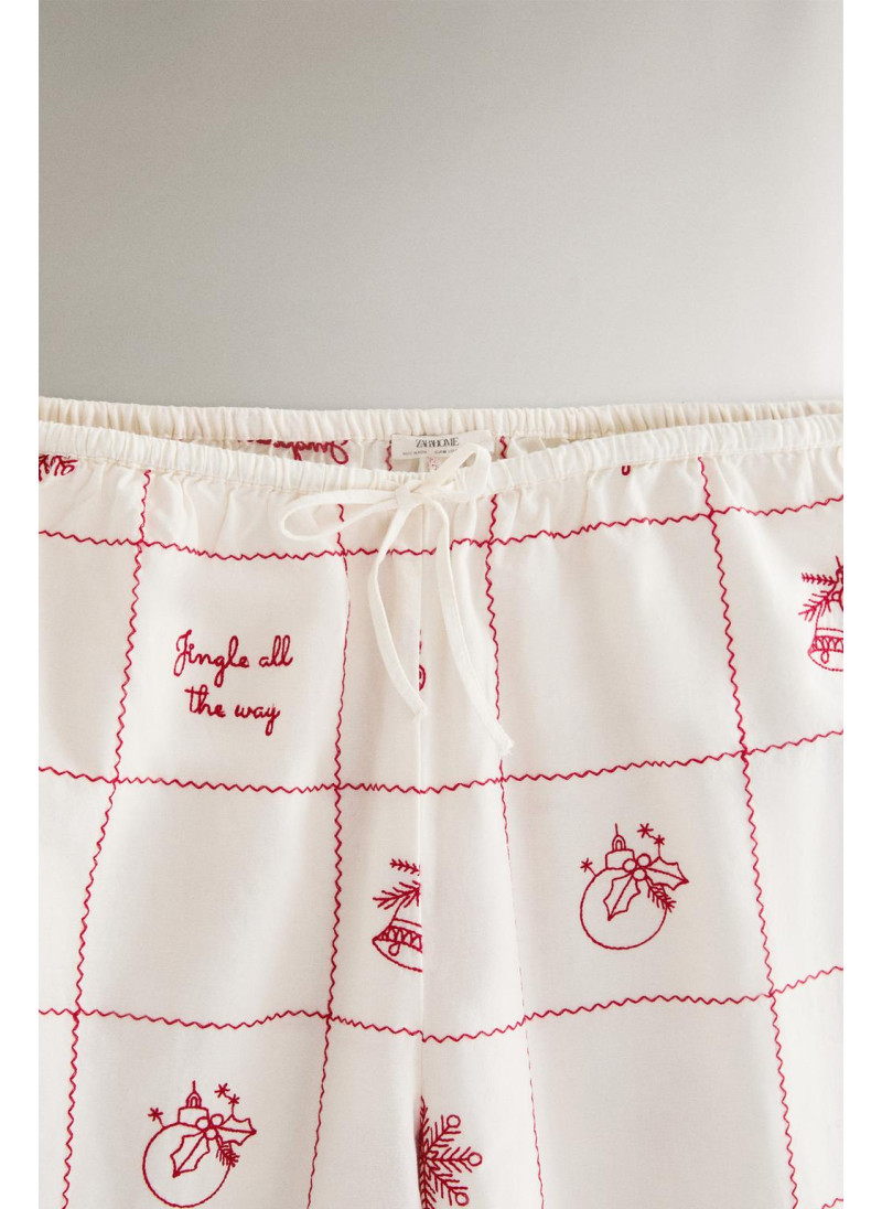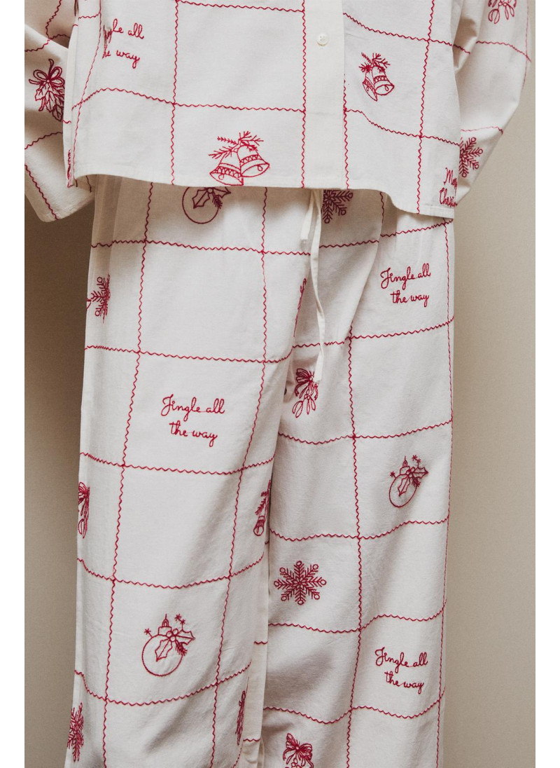 Штаны на рождество из смесовой ткани хлопка и льна с эластичным поясом, клетчатый дизайн и вышивкой.