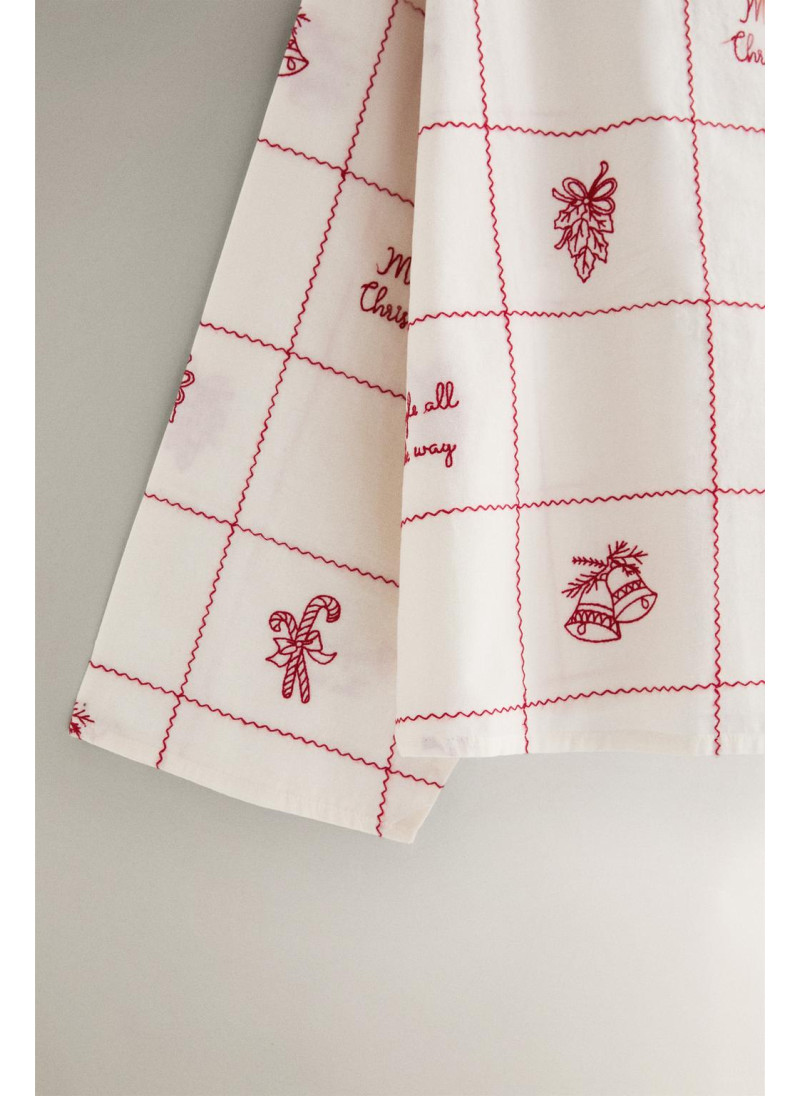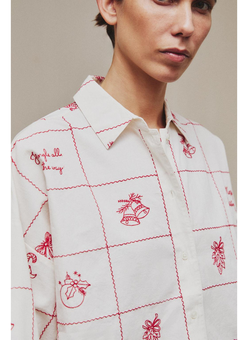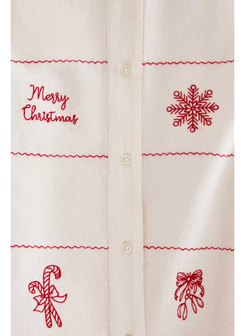 Рождественская рубашка с длинным рукавом из смесового хлопка и льна в клетчатом дизайне с вышивкой. Воротник лацкан и застежка на пуговицы.