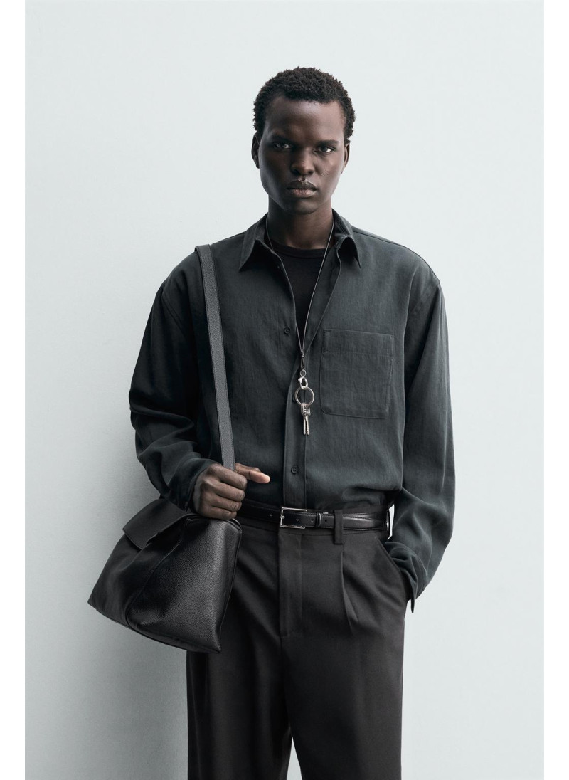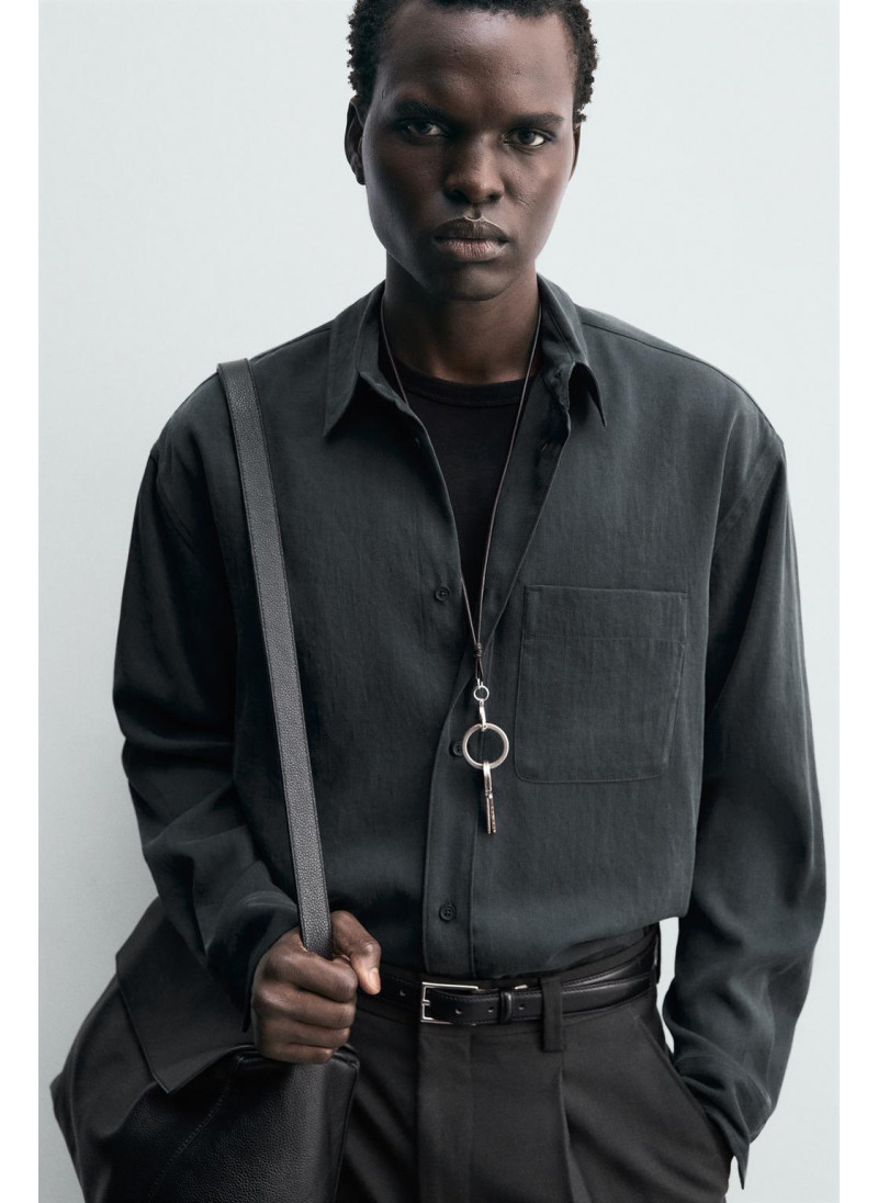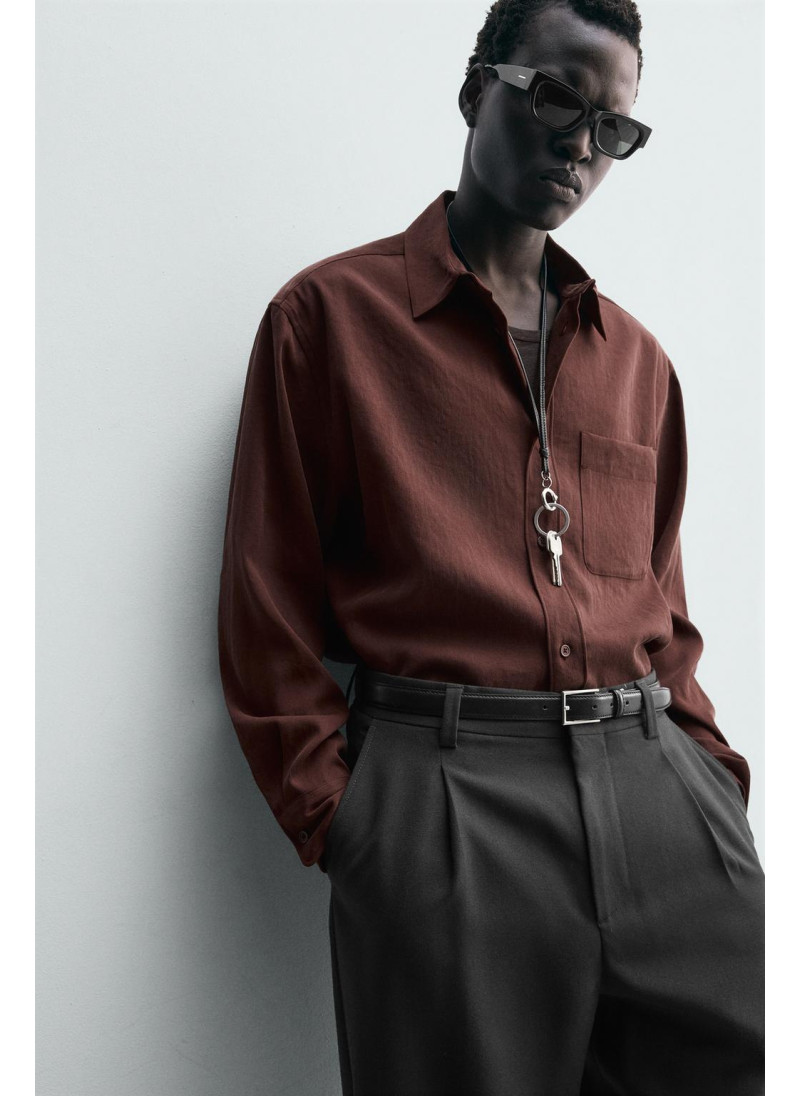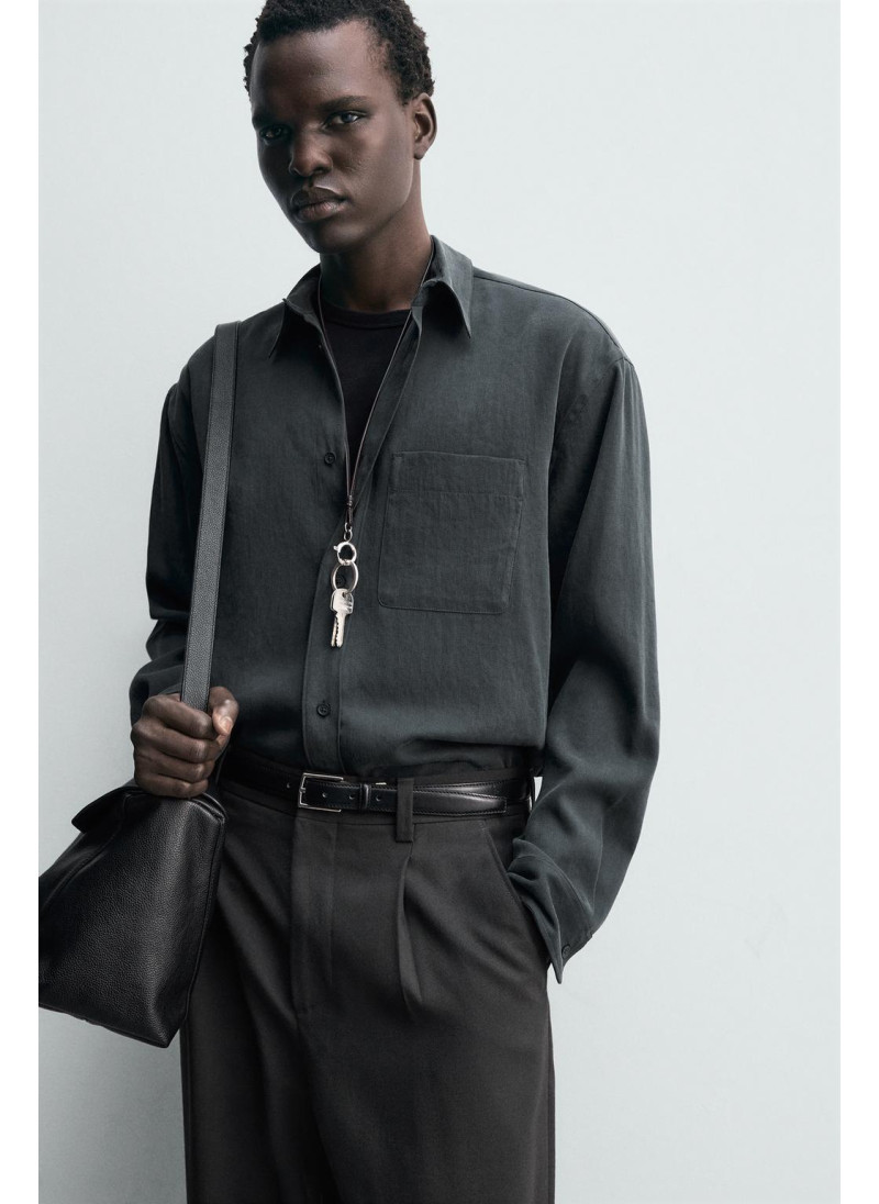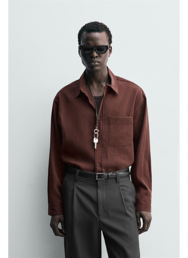 РУБАШКА СВОБОДНОГО КРОЯ ИЗ СТРУЯЩЕЙСЯ ТКАНИ