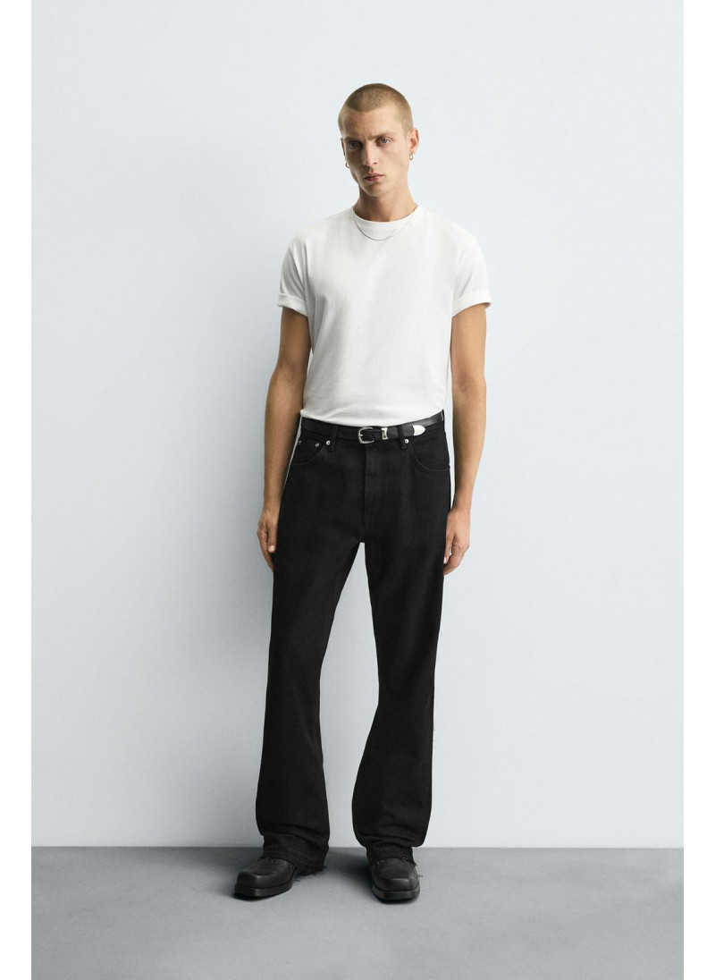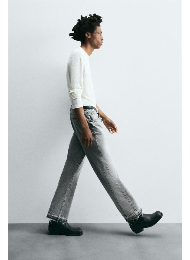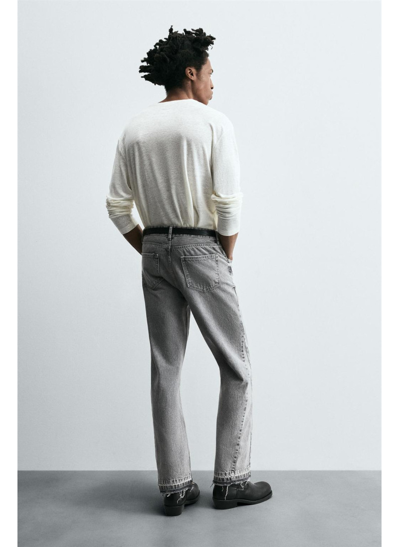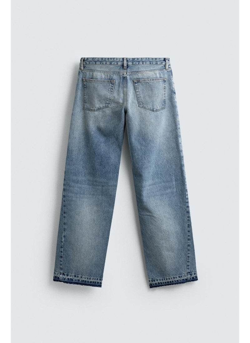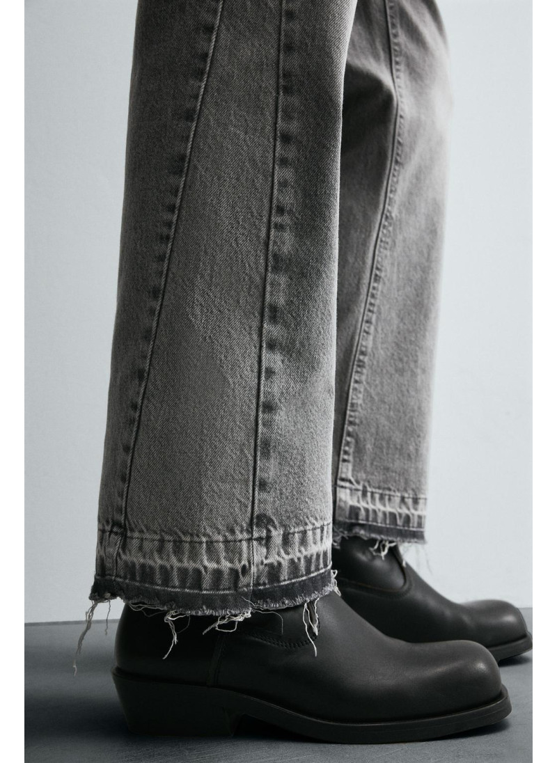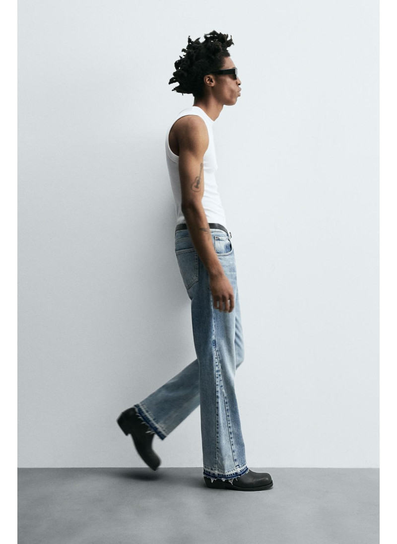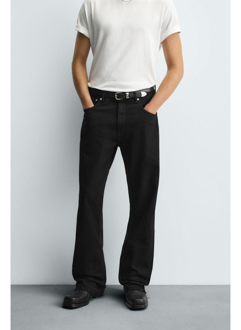 Облегающие сверху и расширяющиеся книзу с колена. Средняя посадка. Жесткая ткань. Джинсы с расклешенными брючинами из хлопкового денима. Пять карманов. Неровный нижний край. Молния и пуговицы на ластовице.