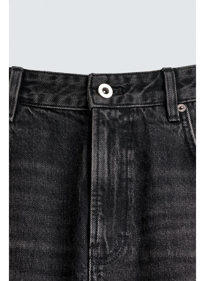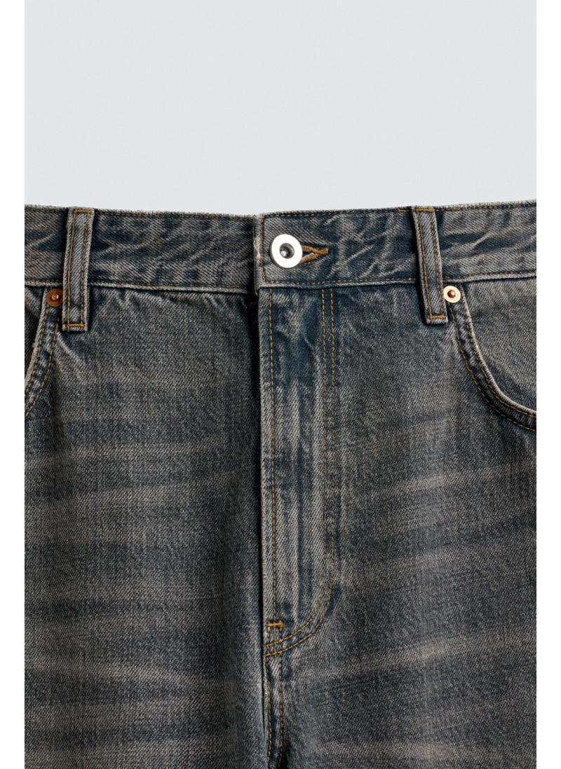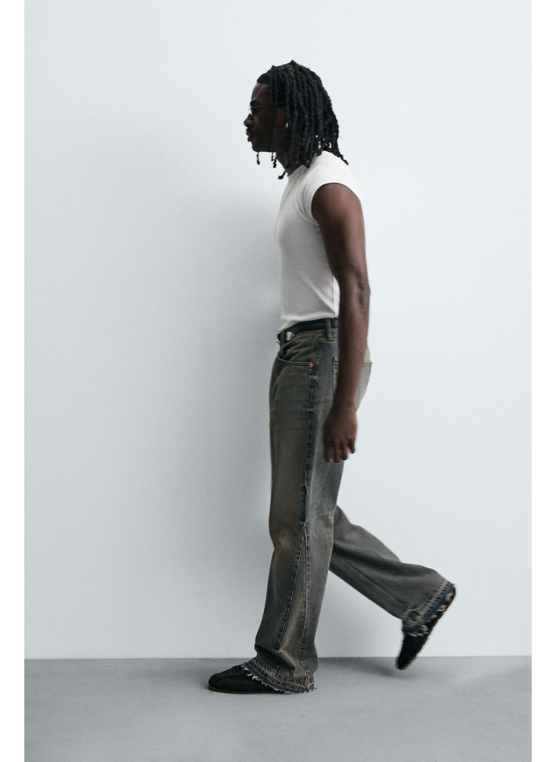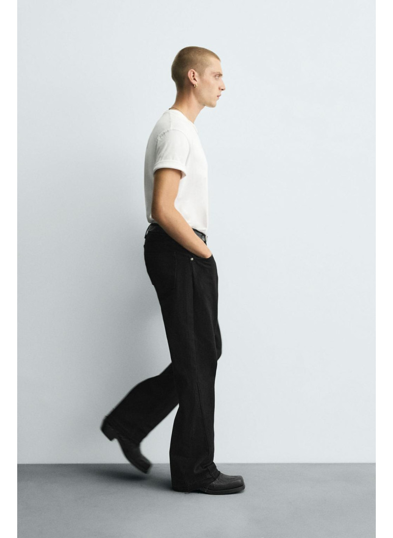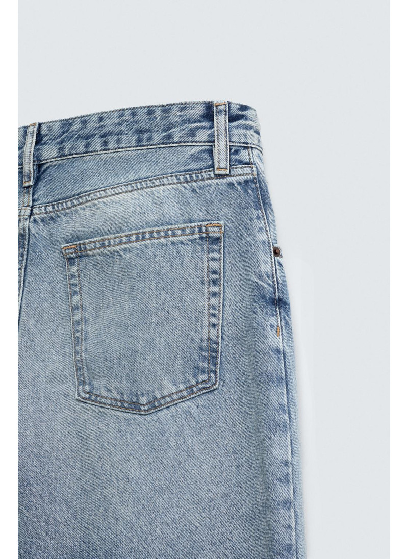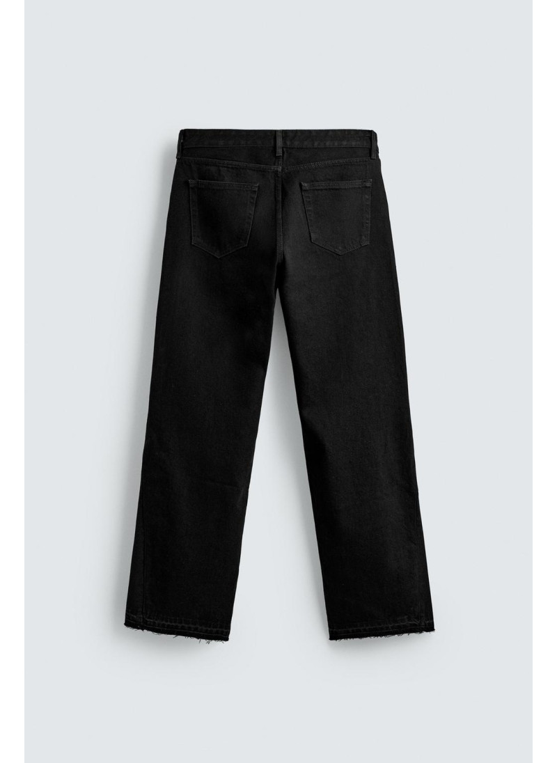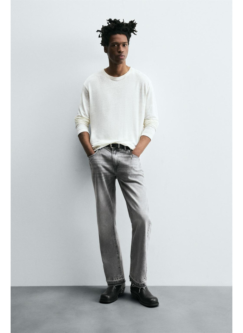 Облегающие сверху и расширяющиеся книзу с колена. Средняя посадка. Жесткая ткань. Джинсы с расклешенными брючинами из хлопкового денима. Пять карманов. Неровный нижний край. Молния и пуговицы на ластовице.