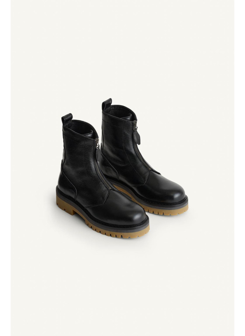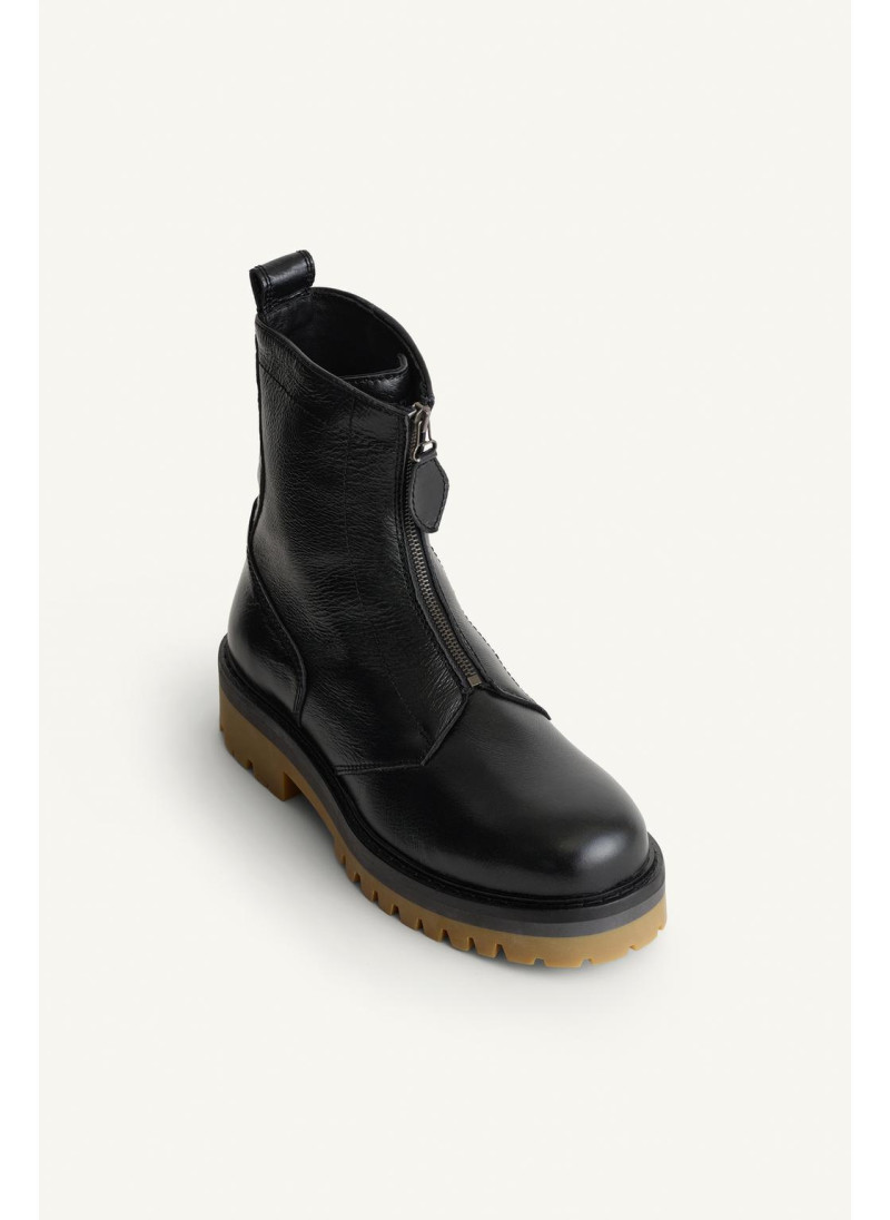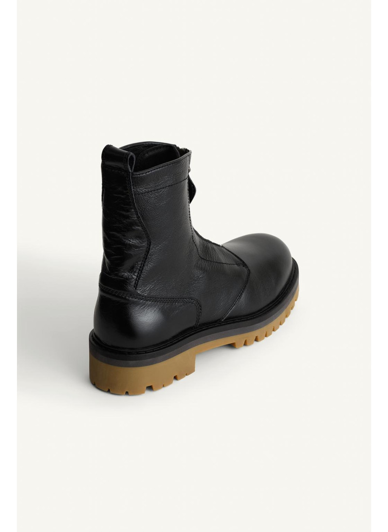 Высококачественные кожаные ботинки с молнией. Простой верх. Кожаная подкладка и стелька. Круглый носок. Массивная контрастная подошва.