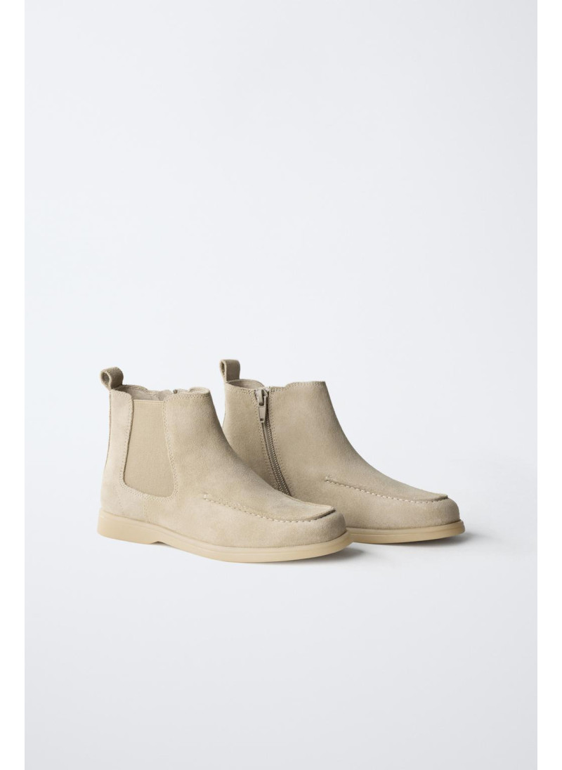 Ботинки в морском стиле из 90% бычьей кожи с замшевой отделкой. Боковая застежка-молния. Эластичная вставка сбоку и петля сзади для удобства обувания. Гибкая стелька. Резиновая подошва.