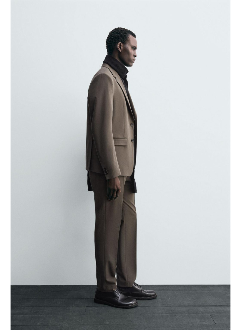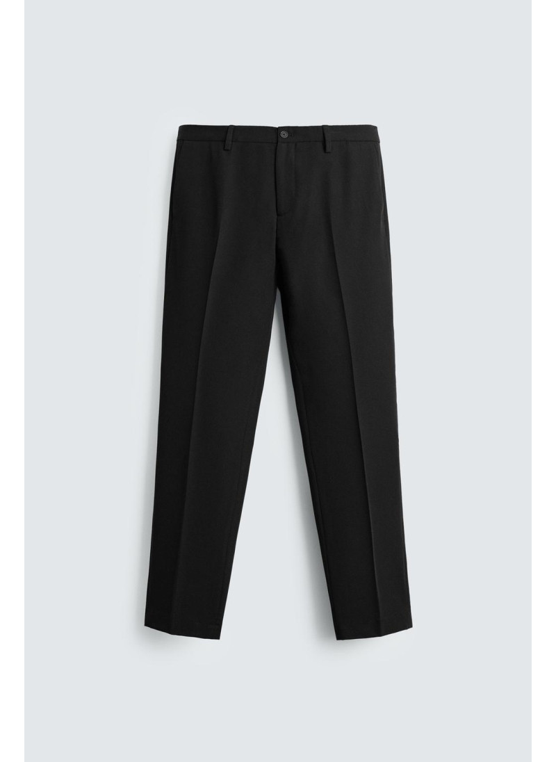 Узкие брюки из вискозной ткани. Передние карманы и задние листовые карманы. Молния и застежка на пуговицу.