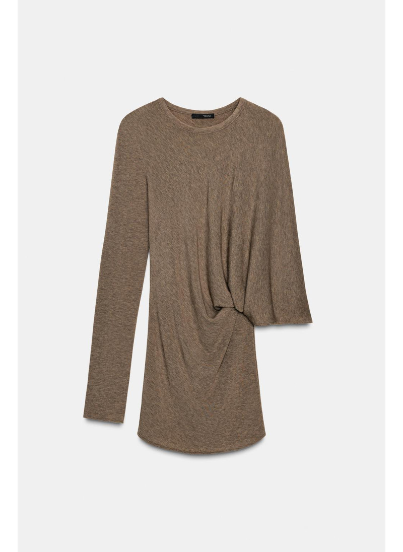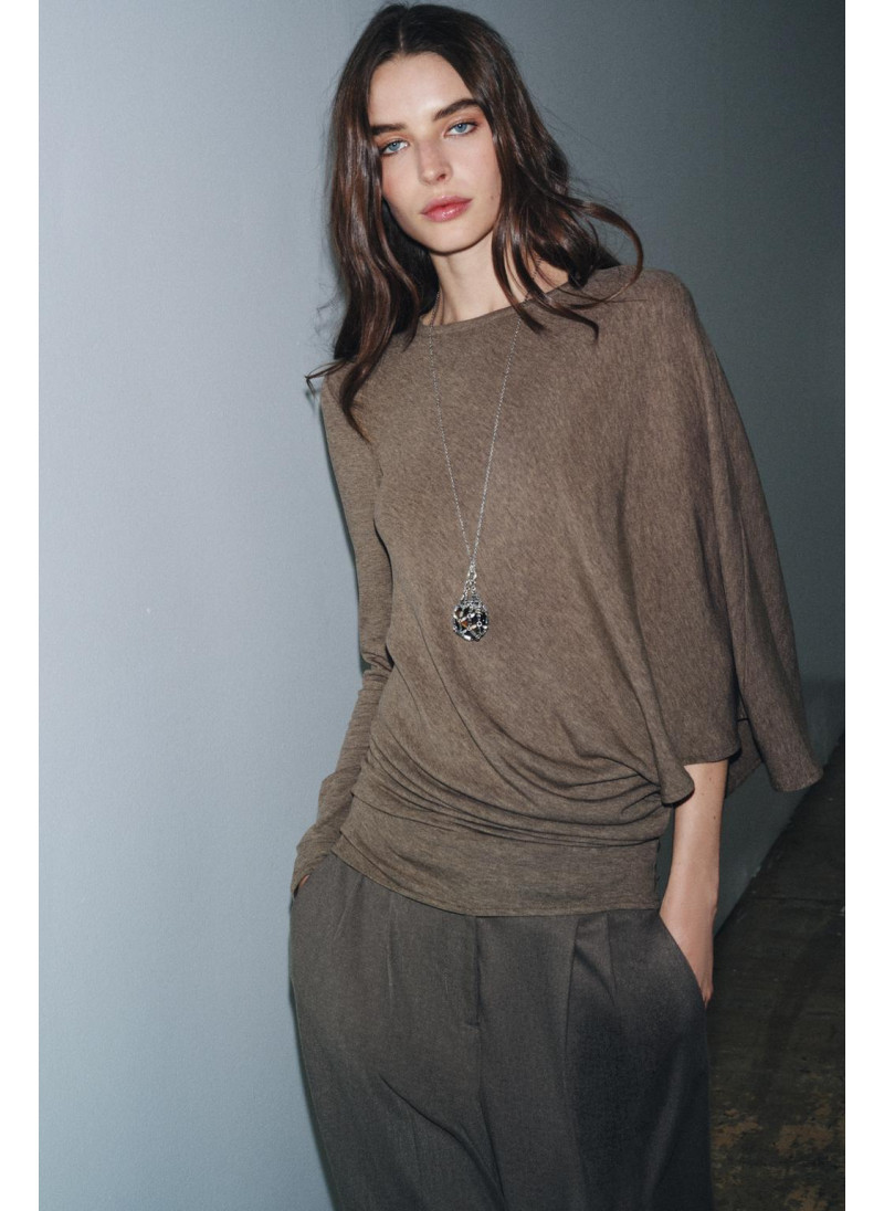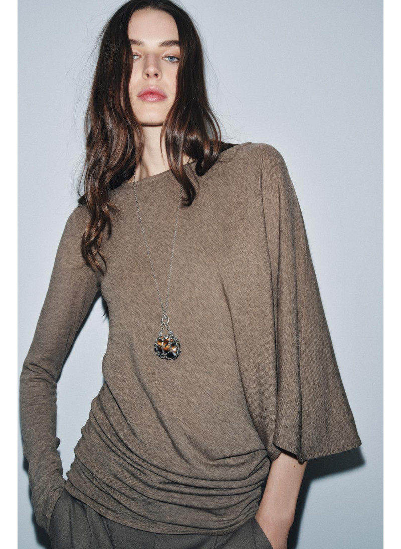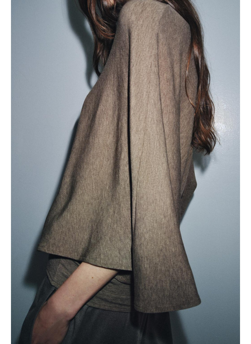 Топ с круглым вырезом. Длинные рукава в стиле накидки. Асимметричный подол.