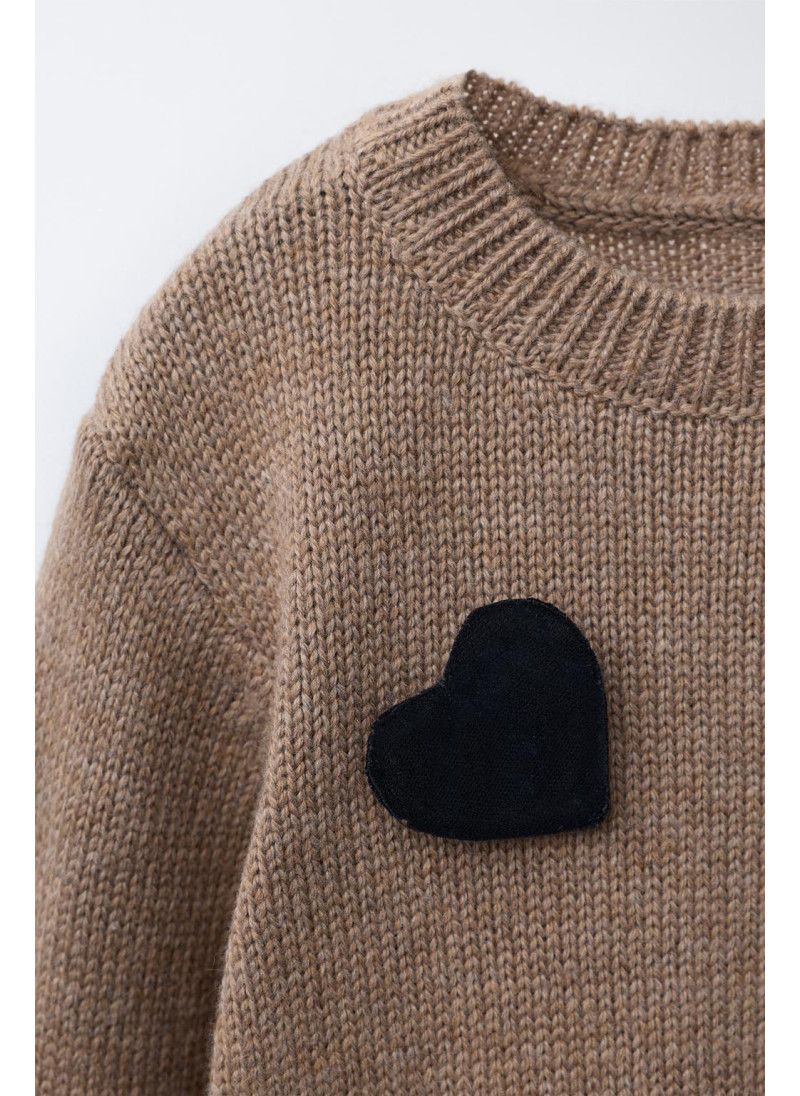 Вязаный джемпер с круглым вырезом и длинными рукавами. Аппликация в виде сердец спереди с контрастным цветом.