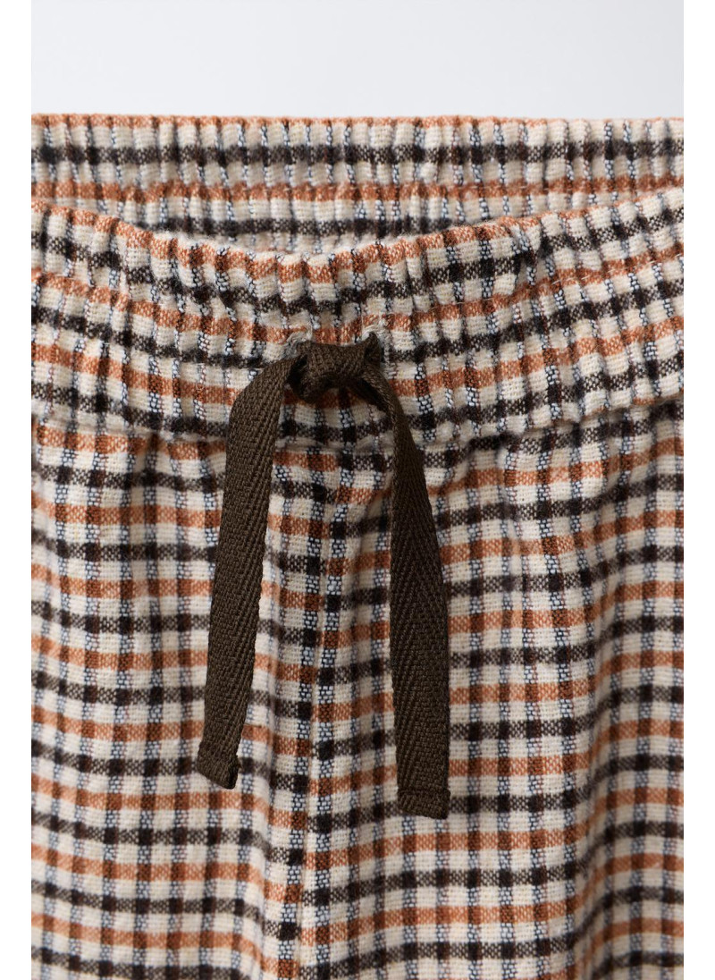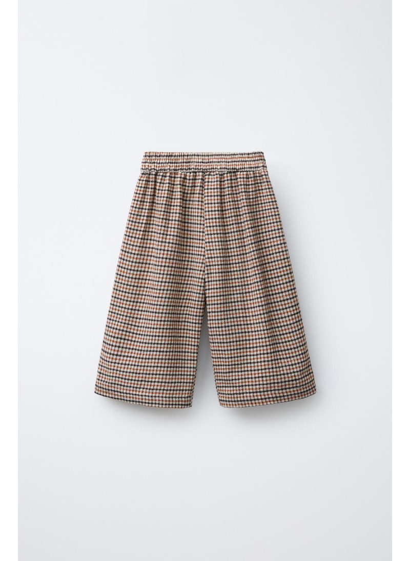 Брюки-кюлоты с эластичным поясом и декоративной шнуровкой спереди. Принт в клетку.